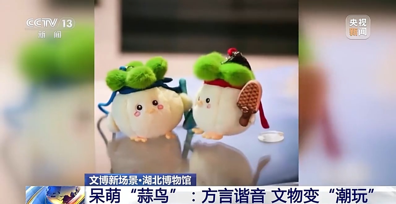 “蒜鸟”发音是武汉方言“算了”的意思,这个结合了武汉方言谐音热梗且造型酷似一颗蒜头的呆萌“蒜鸟”,一直是武汉颇受欢迎的文创形象。在此基础上,湖北省博物馆将“蒜鸟”融入越王勾践剑、吴王夫差矛的文物元素,设计了系列博物馆联名款“蒜鸟”,将古朴韵味与年轻潮玩相结合,让文物藏品焕发新的活力。