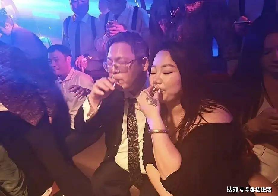 最吸睛的是他身边跟着四个穿黑衣服的保安,进进出出都把他护在中间,活脱脱一副 太子爷出巡 的架势。酒吧里他径直坐在中心卡座,身后齐刷刷站着一排服务员,递酒、点烟、添小吃随叫随到,排场直接拉满。卡座里,向佑全程和一个女子黏在一起,那姑娘看着比向佑还壮实,胳膊上露着明显的纹身,头发油光发亮,手里夹着烟、端着酒杯,烟酒不离手,两人搂搂抱抱、说说笑笑,举止十分亲密,怎么看都不像是谈生意,纯纯是深夜泡吧寻欢的模样。