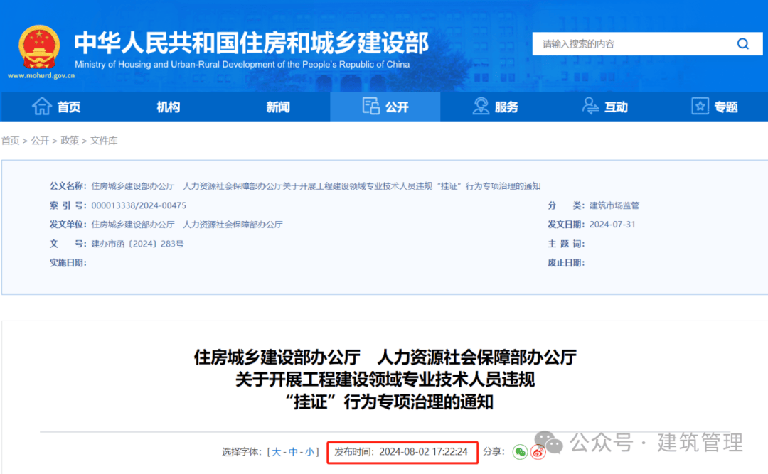 8月2日,住建部联合人社部发布《关于开展工程建设领域专业技术人员违规“挂证”行为专项治理的通知》: