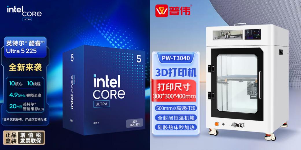 针对工业制造与创意开发类企业的专业需求,京东同步引入高性能计算与智能生产设备。英特尔酷睿Ultra 5 225盒装CPU具备10核10线GHz,为多场景工作任务提供强劲算力基础;普伟PW-T3040工业级3D打印机采用直线导轨与闭环电机设计,配合全封闭高温喷头,实现高精度、大尺寸打印输出,有效支持从产品原型开发到小批量定制生产,为企业“智造”升级提供专业工具保障。