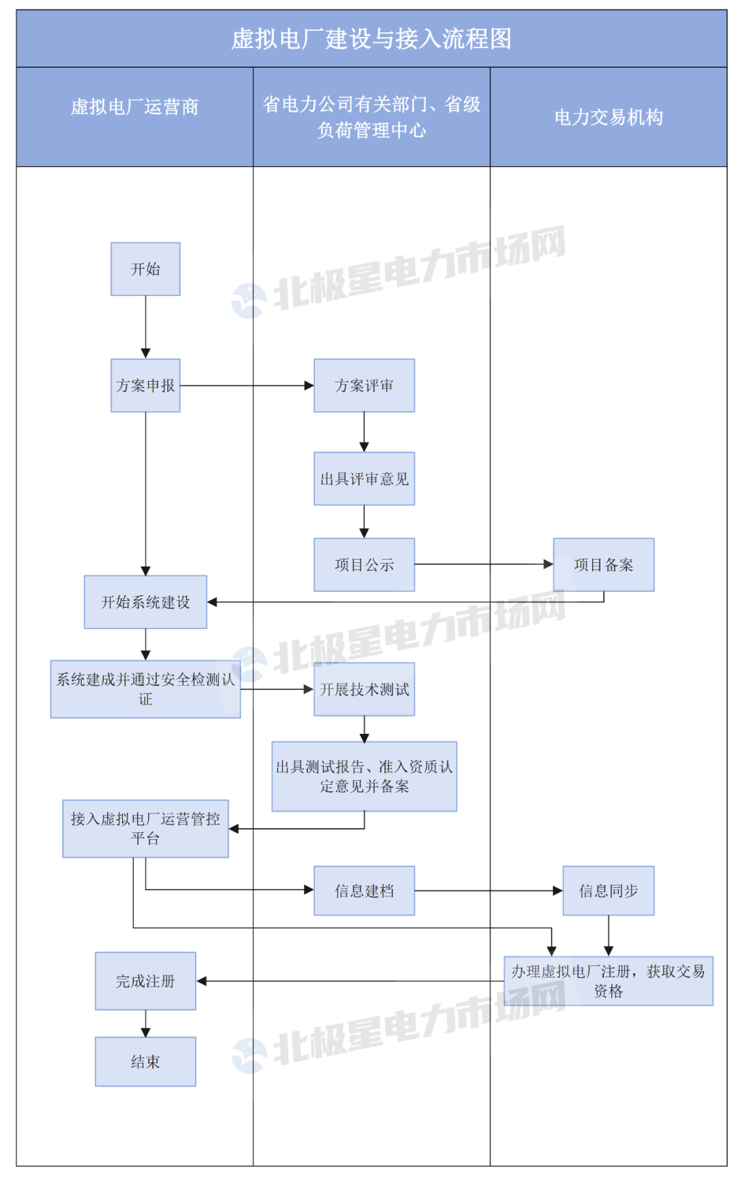 满足条件后,注册流程其实并不复杂,虚拟电厂初期参照售电公司,遵循“一地注册、信息共享”的原则,全程依托电力交易机构办理,核心分为四步: