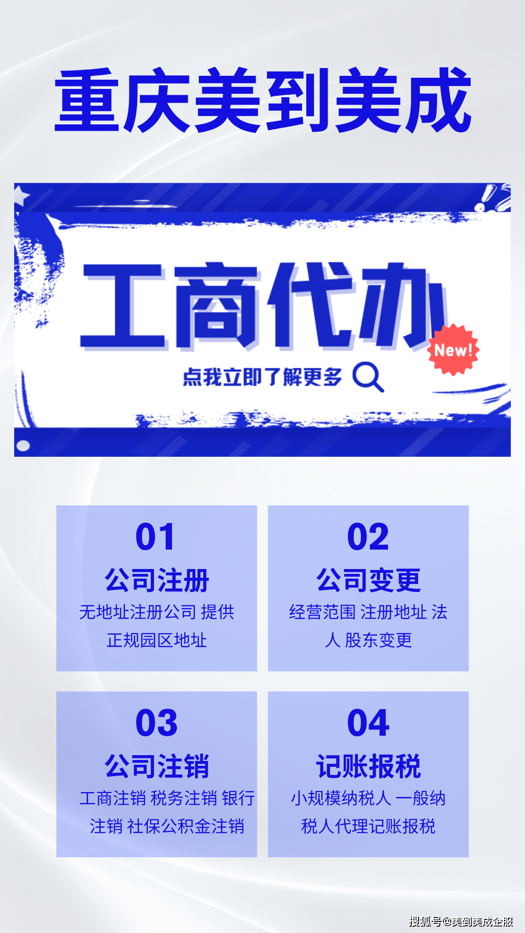 总结:在重庆九龙坡区注册公司,了解详细的流程和费用至关重要。注册流程包括公司核名、提交材料、领取执照、刻章备案、银行开户和税务登记等多个环节。费用方面,涉及注册登记、刻章、银行开户以及可能的代理记账费用等。创业者可以根据自身情况选择自行办理或委托专业的服务机构。美到美成(重庆)企业管理咨询服务有限公司凭借其在重庆本地市场多年的经验和专业服务,能有效帮助创业者顺利完成重庆九龙坡区公司注册,节省时间和精力,为创业之路保驾护航。返回搜狐,查看更多