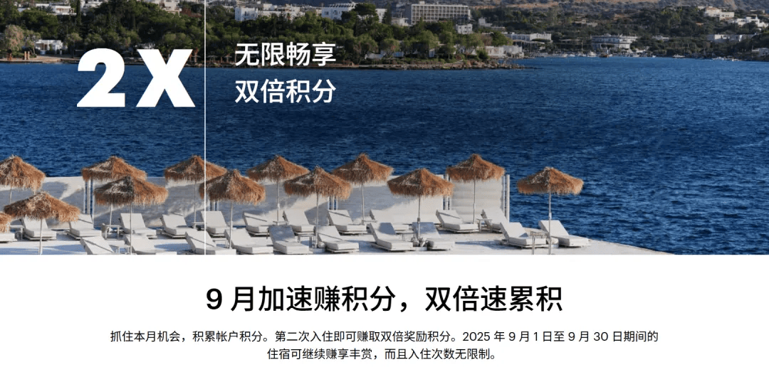 另外目前九月份还有另外一个活动——9月份的第二次入住开始可以双倍积分,不设上限。